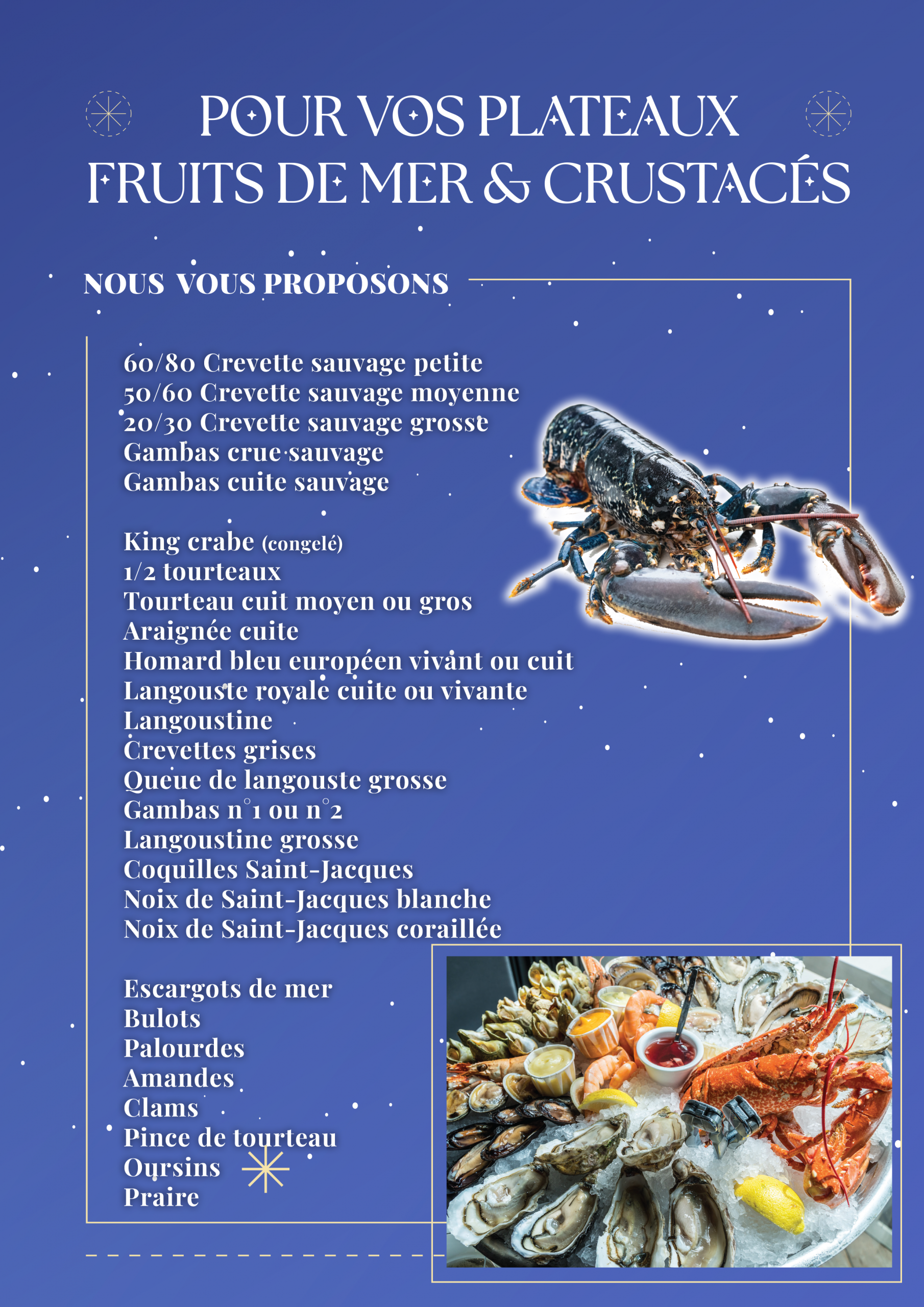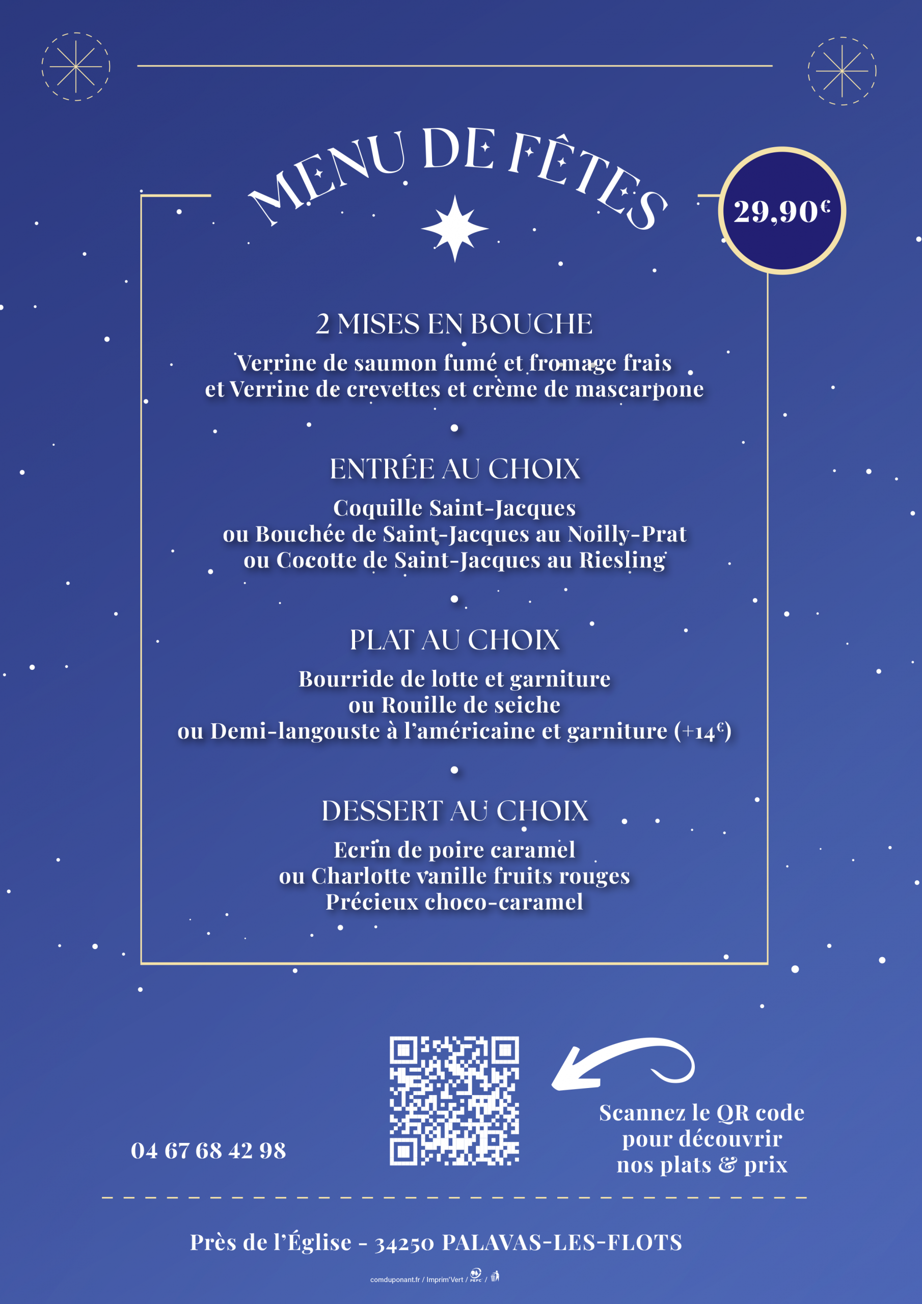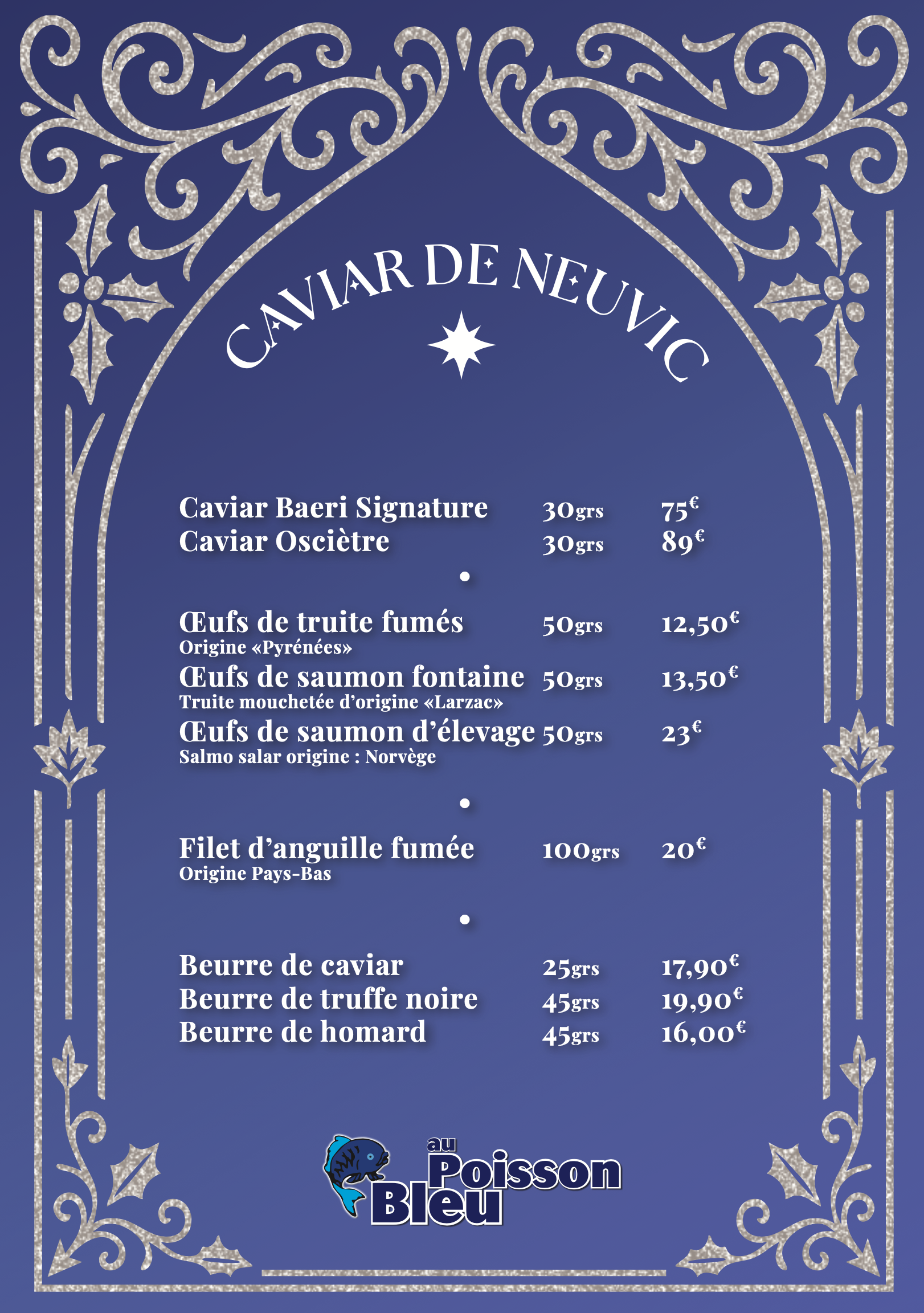 Le Poisson Bleu vous propose ses délicieux plats à emporter, préparés sur commande selon vos envies.